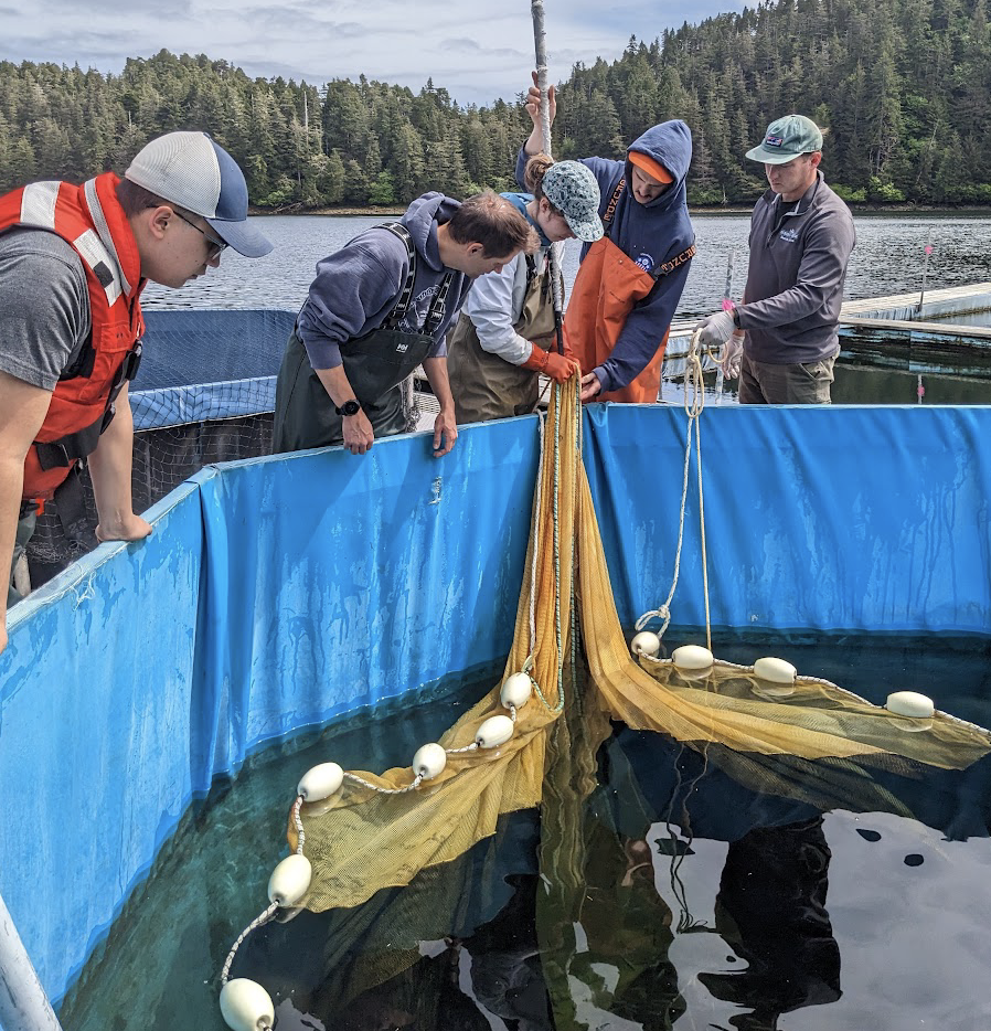 I spent five weeks in Little Port Walter completing fieldwork including blood sampling, saltwater challenges, collecting and processing Chinook salmon and more. Blood sampling was collected for evidence of PFAS, and saltwater challenges were run to explore the possibility of reducing the time for commercial fish hatcheries to house and raise fish from two years to one. Research was also collected on all Chinook salmon that passed through LPW; this information is later used to inform the state about setting catch limits for sport and commercial fishers.
