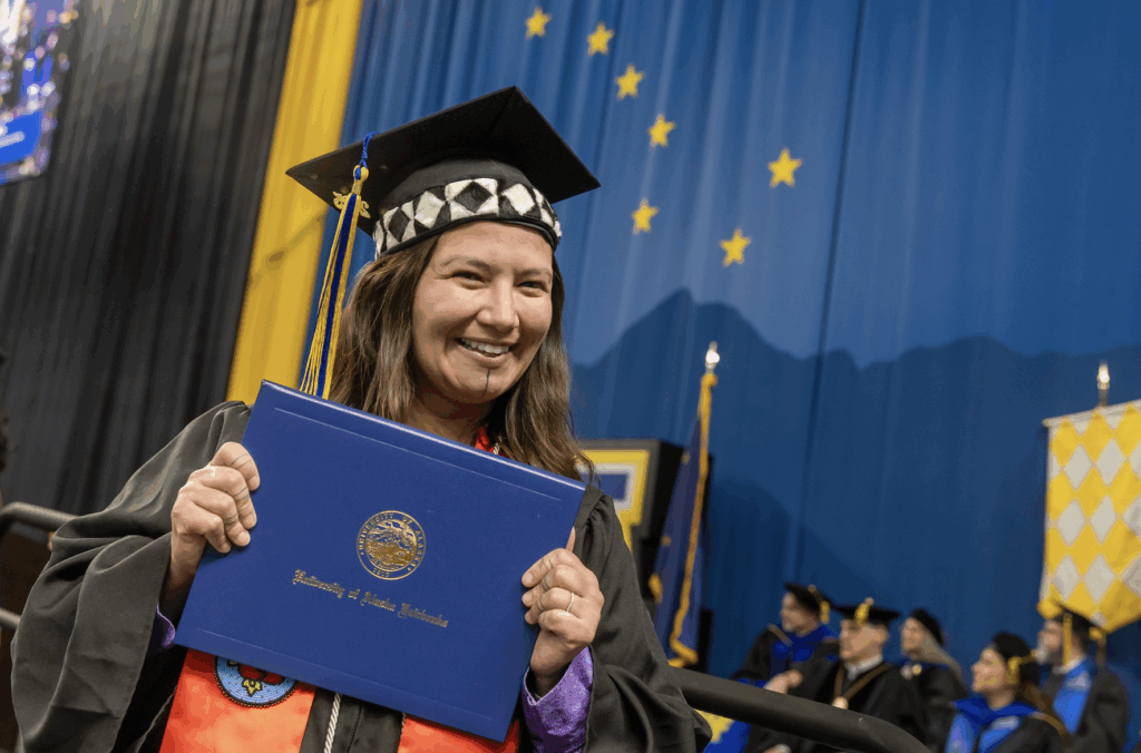 Today, Kristen is a proud graduate of UAF, following in the footsteps of her mother, a first-generation college student who earned her degree from the same university. That legacy of perseverance continues through Kristen’s own academic accomplishments and provides inspiration to her children and community.